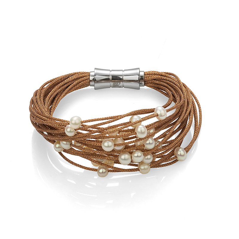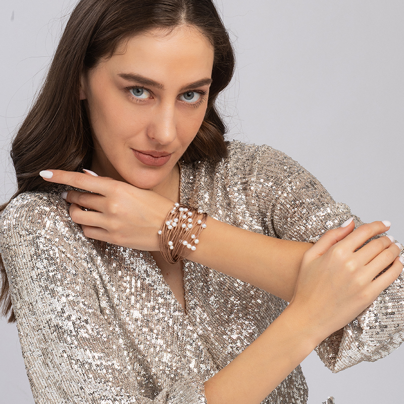 Гривна с естествени бели сладководни перли, подредени върху синтетични нишки и завършена със закопчалка от неръждаема стомана. Перлите внасят красив блясък, който стои елегантно както в ежедневна визия, така и в по-официални комбинации.