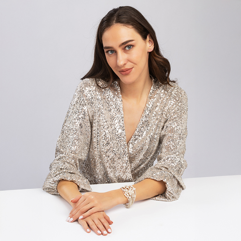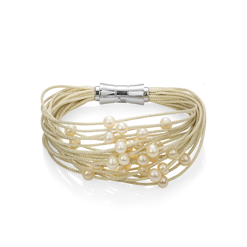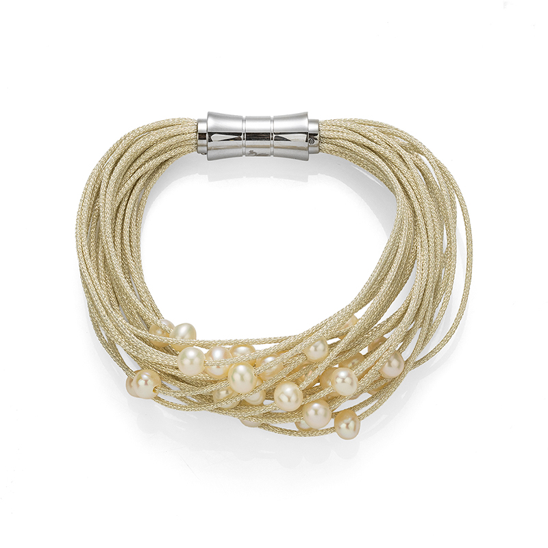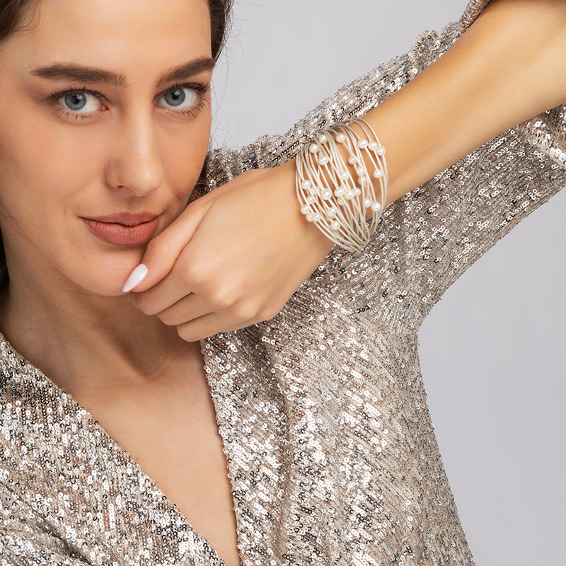 Гривна с естествени бели сладководни перли, подредени върху синтетични нишки и завършена със закопчалка от неръждаема стомана. Перлите внасят красив блясък, който стои елегантно както в ежедневна визия, така и в по-официални комбинации.