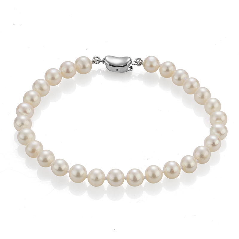 Изящни и в същото време дискретни, сладководните перли правят впечатление със своя естествен огледален блясък. Перлите се отглеждат във ферми в Япония и след изваждането им от водите започва тяхната ръчна селекция по форма, блясък и качество. Огърлицата е нанизана на копринен конец с фина тънка игла, като между всяка перла се прави нежен възел за осигуряването на гъвкавост и издръжливост на наниза.