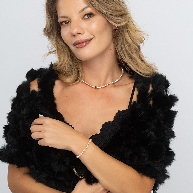 Изящни и в същото време дискретни, сладководните перли правят впечатление със своя естествен огледален блясък. Перлите се отглеждат във ферми в Япония и след изваждането им от водите започва тяхната ръчна селекция по форма, блясък и качество. Огърлицата е нанизана на копринен конец с фина тънка игла, като между всяка перла се прави нежен възел за осигуряването на гъвкавост и издръжливост на наниза.