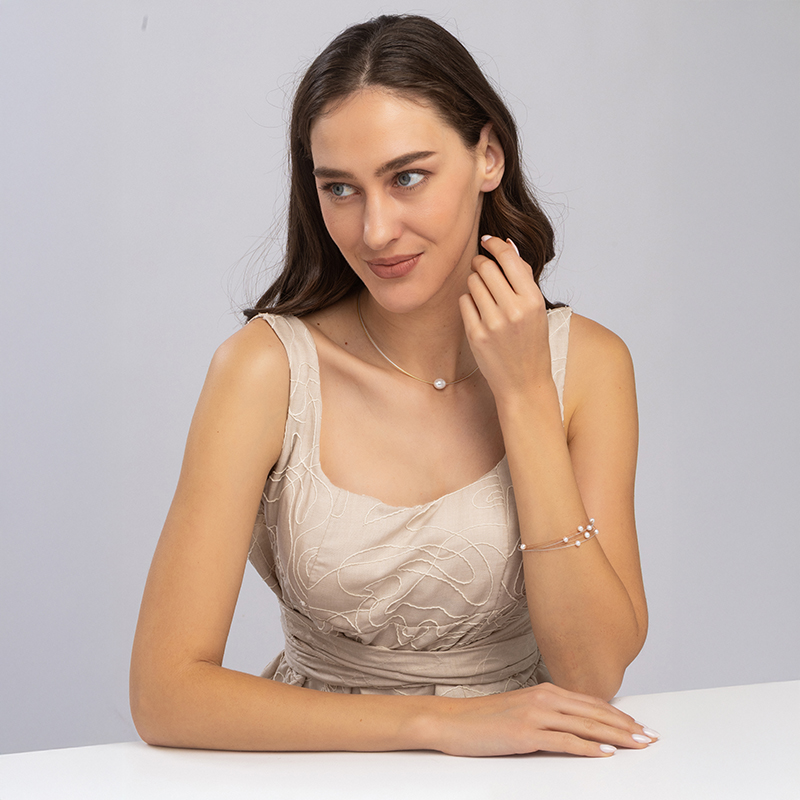 Закопчаването е изработено от неръждаема стомана. Моделът стои деликатно около шията и се комбинира лесно както с ежедневни, така и с по-елегантни визии.