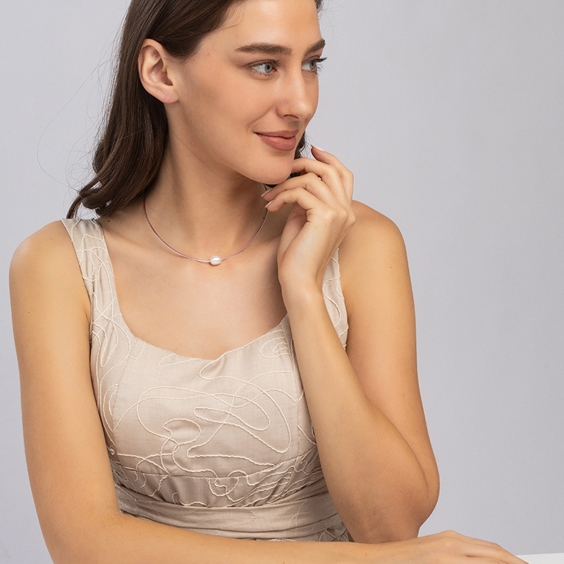 Закопчаването е изработено от неръждаема стомана. Моделът стои деликатно около шията и се комбинира лесно както с ежедневни, така и с по-елегантни визии.