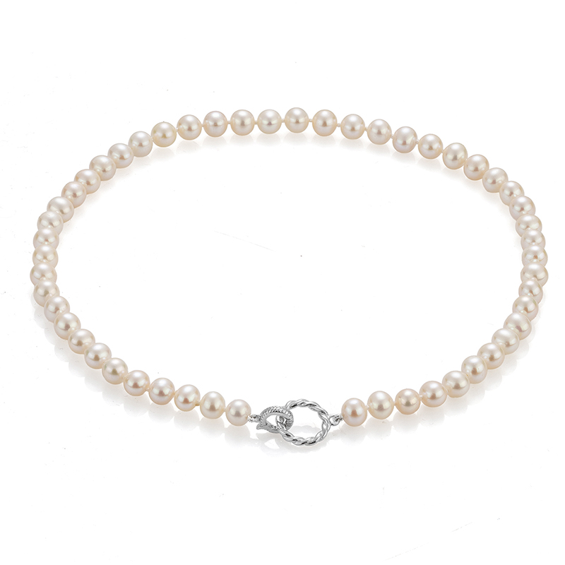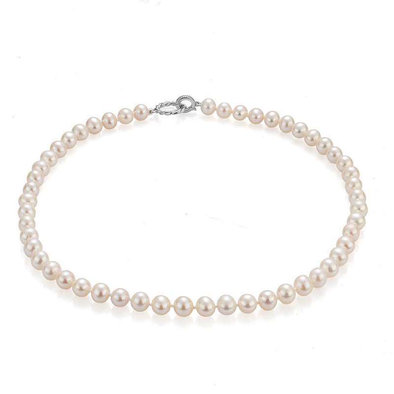 Изящни и в същото време дискретни, сладководните перли правят впечатление със своя естествен огледален блясък. Перлите се отглеждат във ферми в Япония и след изваждането им от водите започва тяхната ръчна селекция по форма, блясък и качество. Огърлицата е нанизана на копринен конец с фина тънка игла, като между всяка перла се прави нежен възел за осигуряването на гъвкавост и издръжливост на наниза.