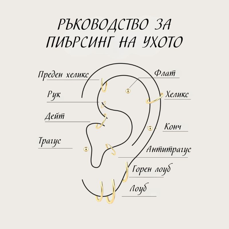 *Тази елегантна обеца е специално подходяща за лоуб, горен лоуб, флат, конч, трагус.