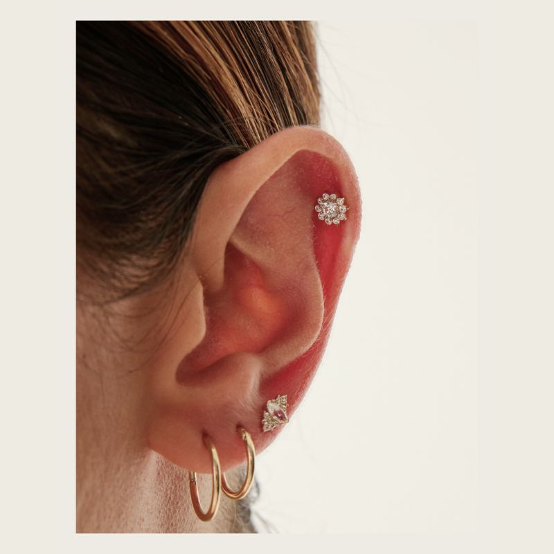 Благодарение на своя изчистен и изтънчен дизайн, този пиърсинг стои прекрасно самостоятелно, но се комбинира чудесно и с други обеци и пиърсинги. Нежен, блестящ и женствен — идеален за ежедневието, офиса или специални моменти, когато искаш да добавиш стилен и сияен акцент към визията си.