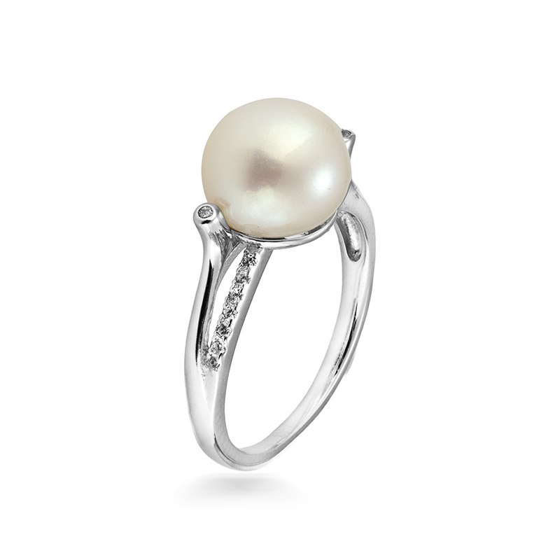 Този сребърен пръстен е изискан акцент за всеки повод. Централно е разположена красива сладководна бяла култивирана перла, обгърната от линия инкрустирани цирконий, които подчертават нейния нежен блясък. Изработен от висококачествено сребро, пръстенът е съчетание на стил, женственост и вечна красота.