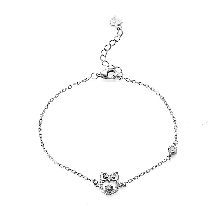 Тази гривна, изработена от висококачествено сребро проба 925, е символ на интуицията, знанието и мъдростта. Дизайнът се отличава с деликатен централен елемент във формата на бухал, чийто силует е прецизно инкрустиран с блестящи цирконий.