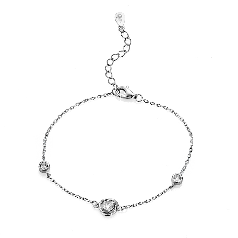 Дизайнът е допълнен от два странични акцента, инкрустирани с цирконий с шлифовка тип брилянт, които улавят светлината и внасят дискретно сияние при всяко движение. Благодарение на своята фина изработка, сребърната гривната приляга нежно към китката и добавя фина деликатност към визията, превръщайки я в идеален подарък за любим човек.