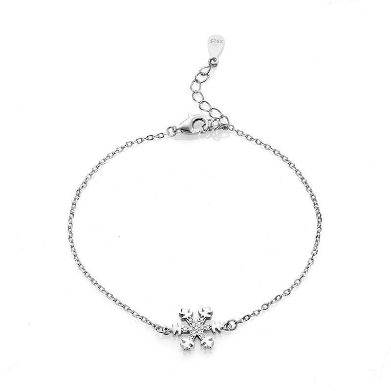 Тази гривна е изработена от висококачествено сребро проба 925 с родиево покритие. В центъра на верижка е разположена деликатна снежинка, чийто детайлен дизайн носи усещане за чистота и празничност.