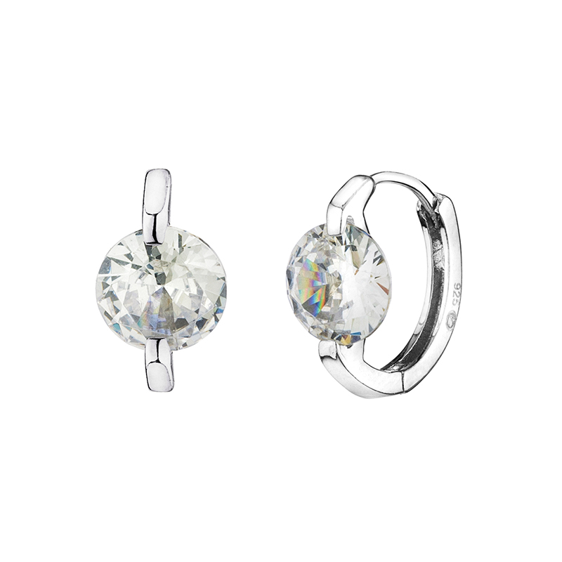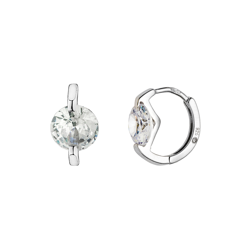 Тези обеци са изработени от сребро проба 925 с родиево покритие. Дизайнът залага на класическа изчистена форма, подчертана от интензивен блясък и прецизен фокус върху централния камък.