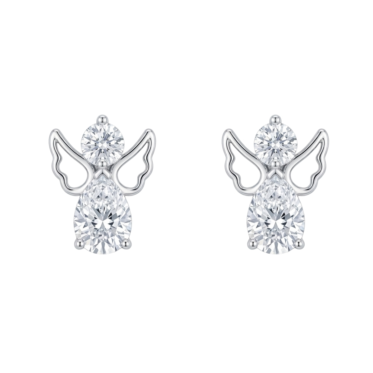 Тези обеци са изработени от сребро проба 925 с родиево покритие. Дизайнът е с класическа романтична форма на ангели, подчертана от интензивен блясък и прецизна инкрустация.
