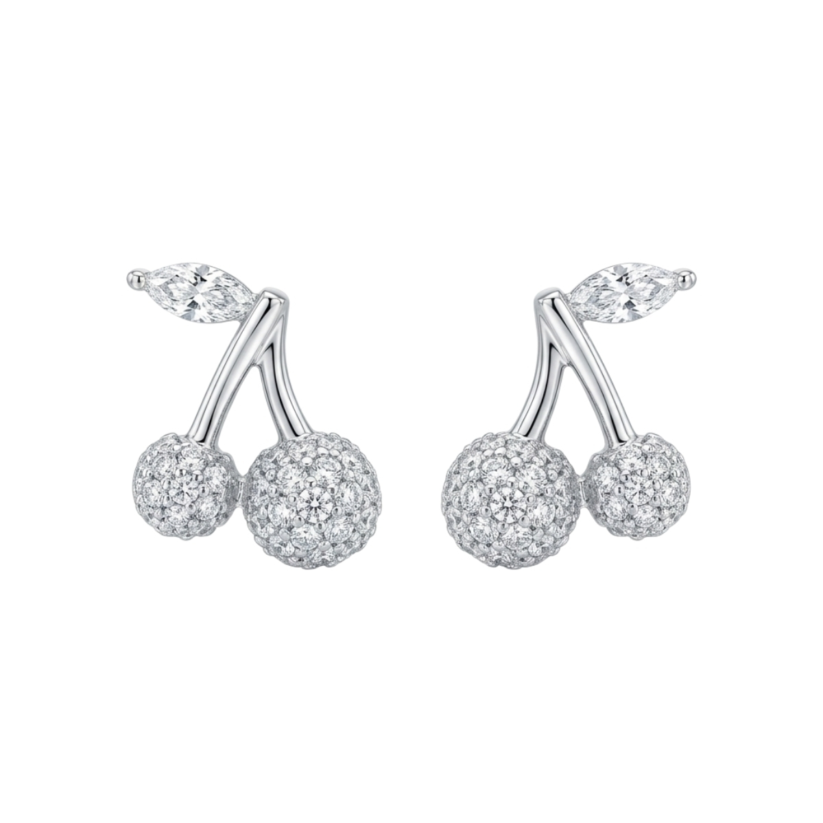 Тези обеци са изработени от сребро проба 925 с родиево покритие. Дизайнът залага на закачлива и деликатна форма на черешки, подчертана от интензивен блясък и прецизна инкрустация.