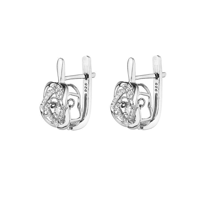 Тези нежни обеци очароват със своя ефирен дизайн, вдъхновен от красотата на природата. Сребристите детайли се преплитат в изящна форма на роза, чието сърце е дискретно акцентирано с блестящ цирконий.