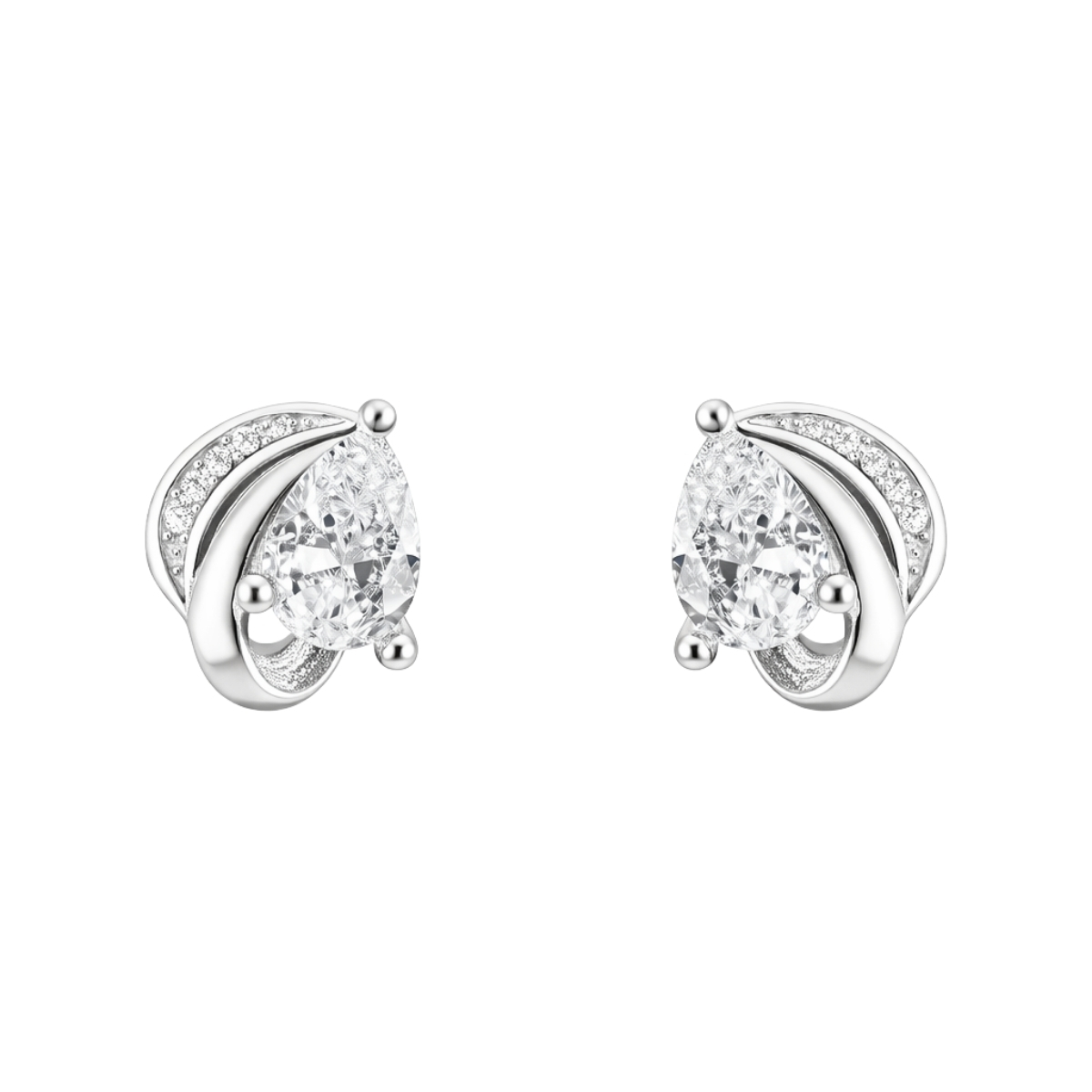 Тези обеци са изработени от сребро проба 925 с родиево покритие. Дизайнът залага на изтънчена капковидна форма, подчертана от интензивен блясък и прецизна инкрустация.