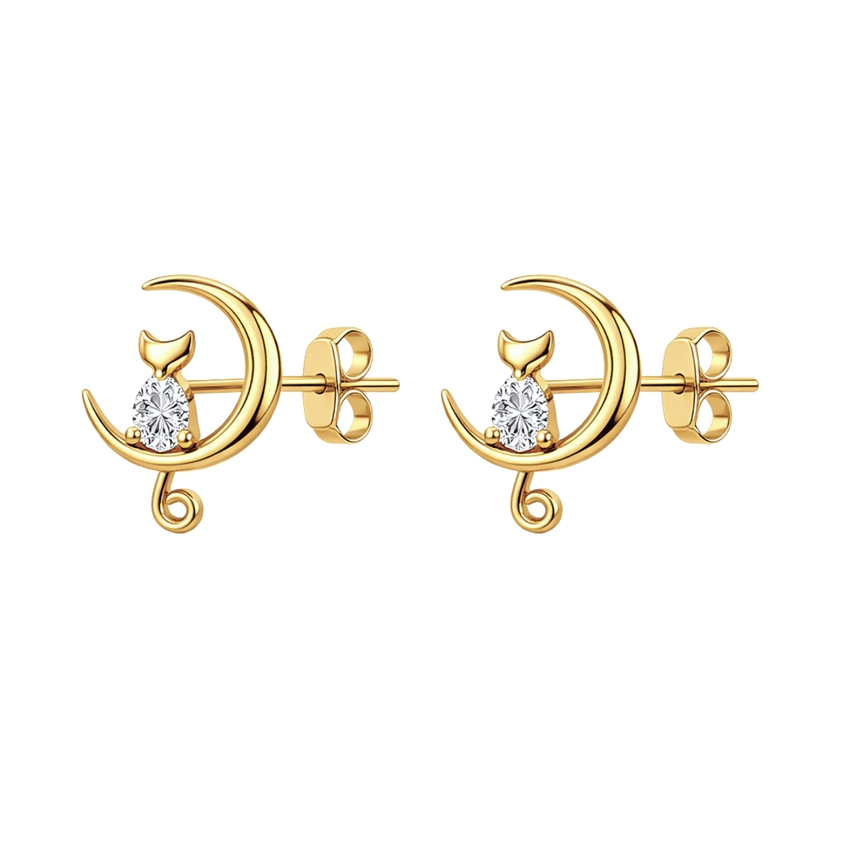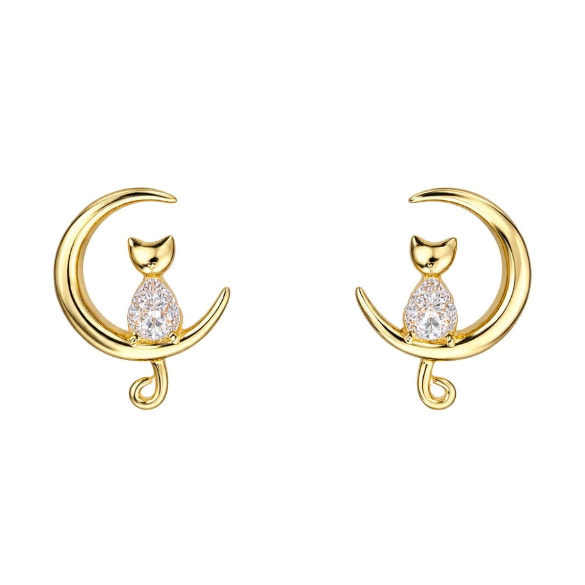 Тези обеци са изработени от сребро проба 925.Дизайнът залага на приказна и деликатна композиция, включваща котка, поседнала върху фин полумесец.