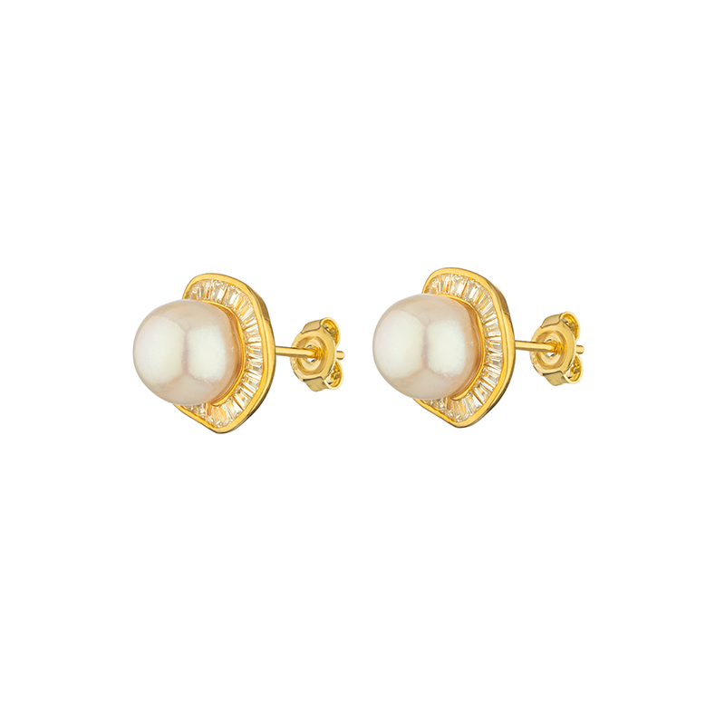 Тези обеци са изработени от сребро проба 925 с 3 микрона покритие от 14 карата жълто злато. Дизайнът се отличава с класическа и деликатна форма, подчертана от прецизна изработка, която насочва вниманието изцяло към естественото сияние на перлите.