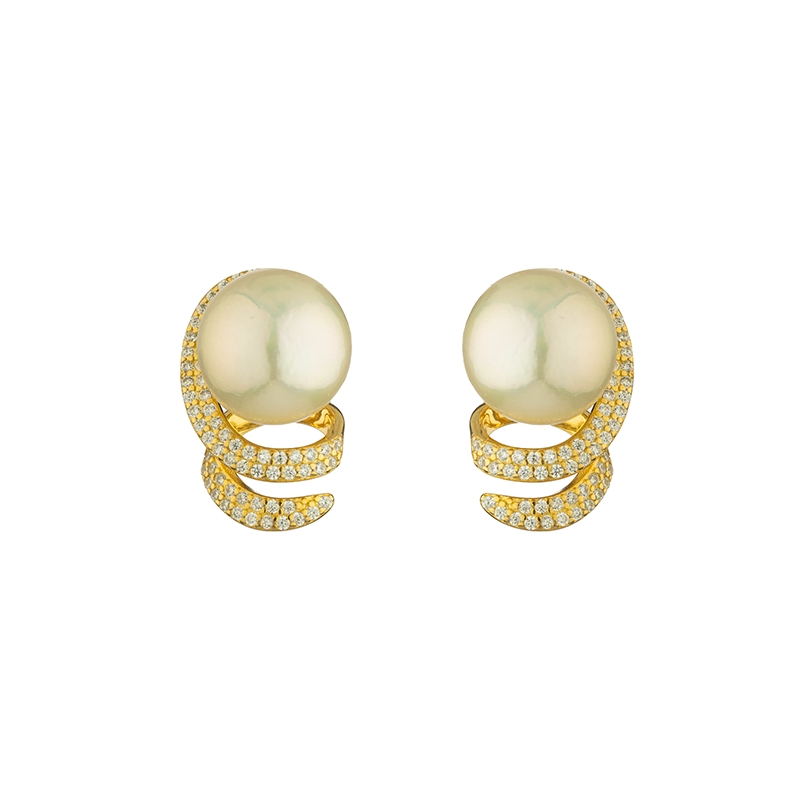 Тези обеци с перли са изработени от сребро проба 925 с висококачествено покритие от 3 микрона позлата. Централният акцент в дизайна са едрите сладководни перли Edison с впечатляващ диаметър от 11-12 мм. Този тип перли са високо ценени в бижутерията заради своята перфектна сферична форма и изключително интензивен, огледален блясък. Благодарение на наситения седефен слой, тези обеци с перли улавят светлината и я отразяват с мекота.