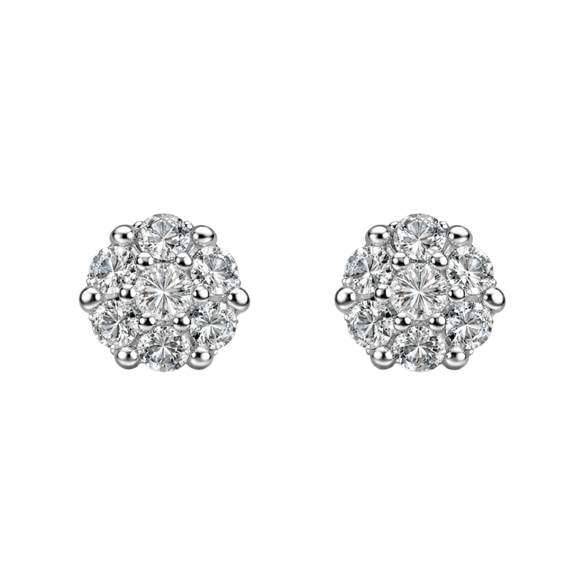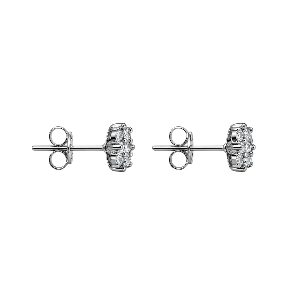 Тези обеци са изработени от сребро проба 925 с родиево покритие. Дизайнът е с класическа романтична форма на малки цветя, подчертана от интензивен блясък и прецизна инкрустация.