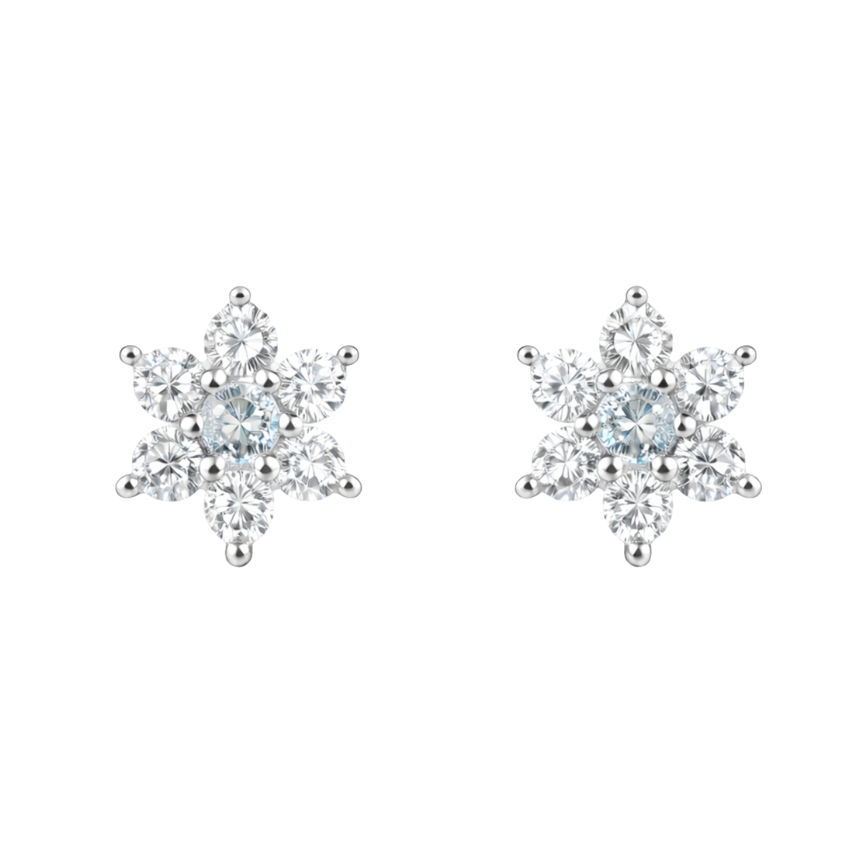 Тези обеци са изработени от сребро проба 925 с родиево покритие. Дизайнът е с класическа романтична форма на нежни цветя, подчертана от интензивен блясък и прецизна инкрустация.