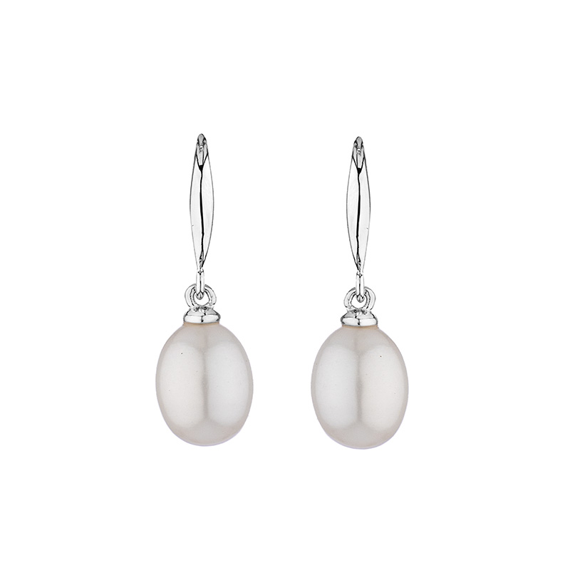 Нежни сребърни обици със сладководни култивирани перли с размер 7 - 7.5 мм в класическия бял цвят.