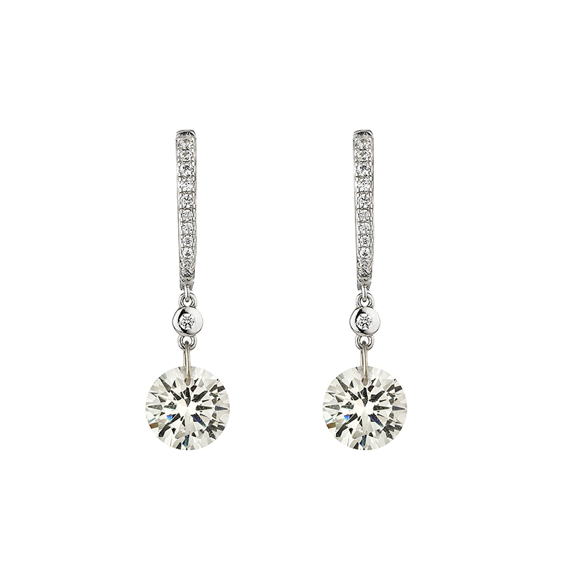 Тези висящи сребърни обеци, изработени от висококачествено родирано сребро 925, впечатляват с изискан дизайн и изящен блясък. В центъра е разположен голям кръгъл цирконий, който привлича светлината и създава ослепителен ефект.
