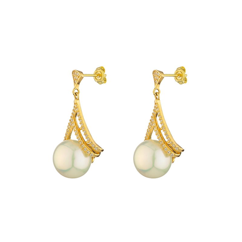 Обеците са със стабилно закопчаване на щифт, което осигурява комфорт и сигурност. Комбинацията от триъгълни форми, искрящи детайли и сияйни перли прави модела отличен избор за дамите, които търсят забележителна и същевременно класическа елегантност.