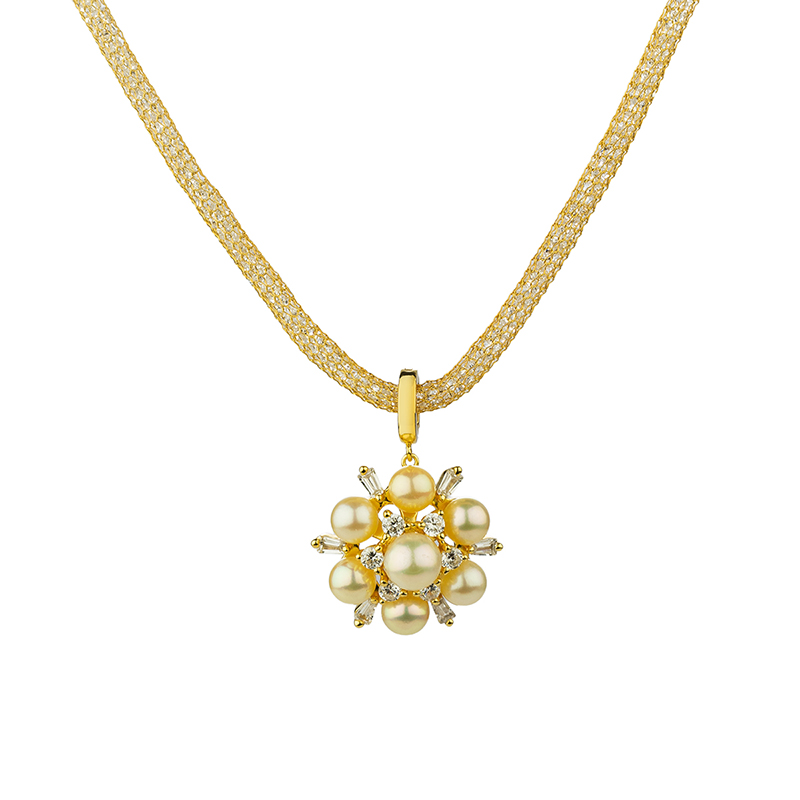 Това колие е изработено от сребро проба 925 с 3 микрона покритие от 14-каратово жълто злато. Синджирът е фина сребърна мрежа с цирконий.
