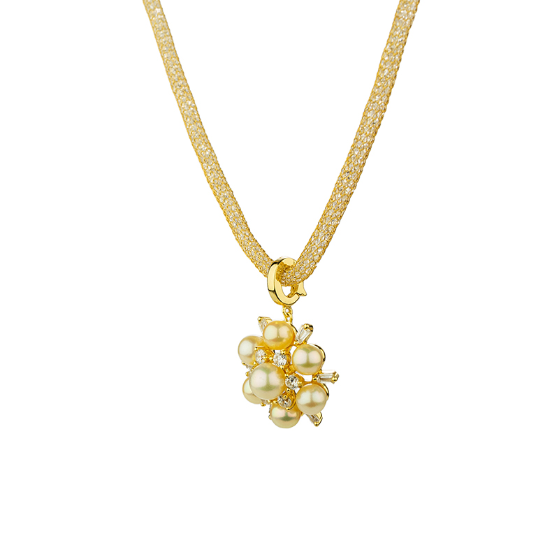 Висулката е във формата на цвете от нежно подредени перли, които оформят хармонична и обемна композиция. Централната перла е обградена от блестящи цирконий, които придават допълнителен разкош и подчертават естественото сияние на перлите.