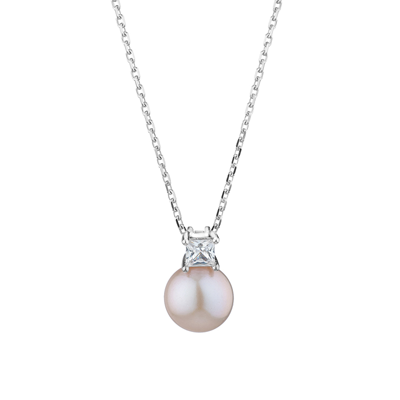 Сребърно колие с розова сладководна култивирана перла и инкрустирани цирконий. То може да бъде перфекно съчетано с обиците от същата серия.