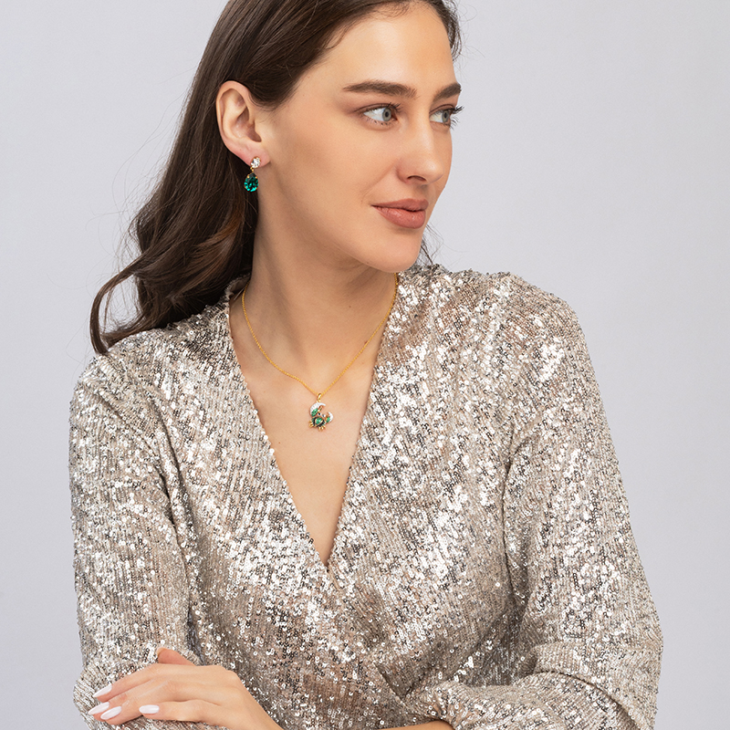 В центъра са разположени зелени цирконий, които придават на колието топлина и изразителност.