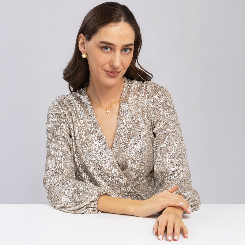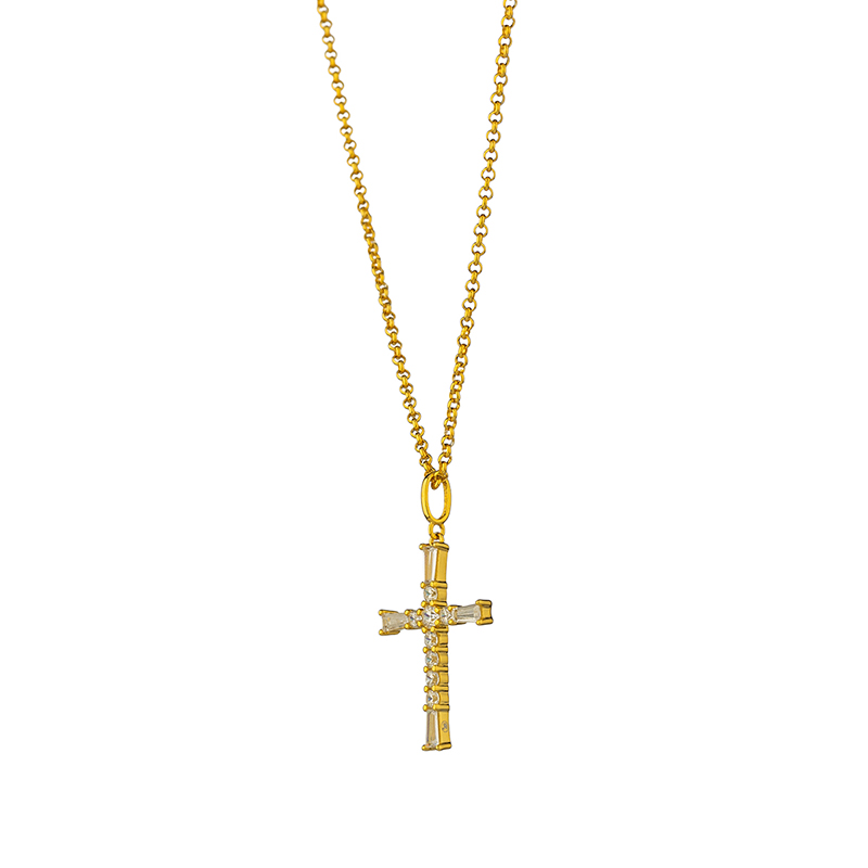 Това елегантно сребърно колие с фино изработено кръстче е обсипано с блестящи циркониеви камъчета, които улавят светлината и придават магнетичен блясък. Кръстът е символ на вяра, защита и вътрешна сила.