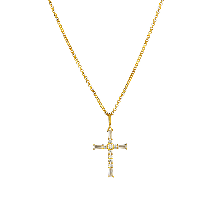 Сребърно колие с кръстче и цирконий – символ на вяра
