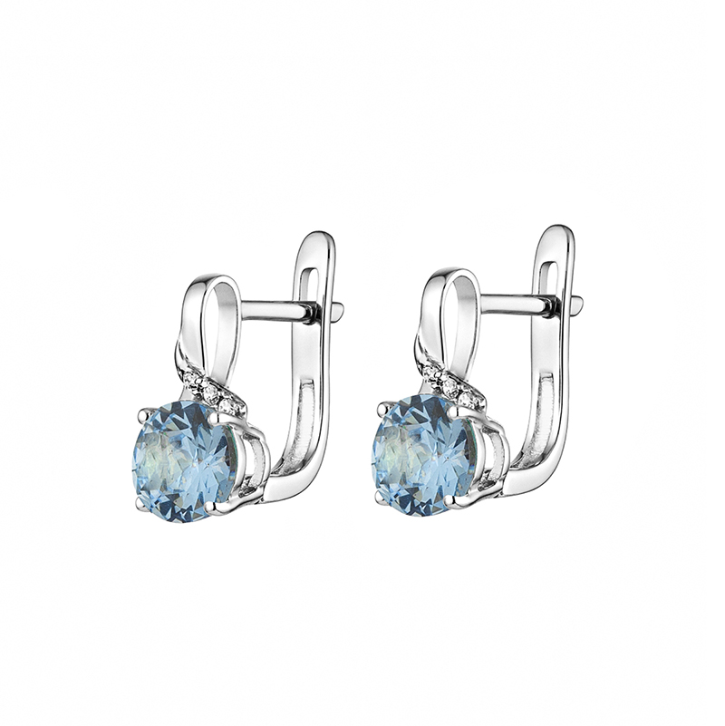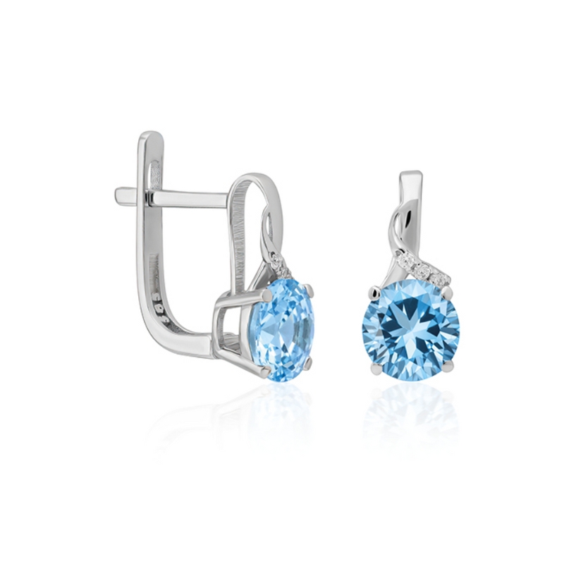 Тези златни обеци са олицетворение на елегантността, съчетавайки блясъка на бялото злато с класическите линии на нежния дизайн. На обеците са инкрустирани висококачествен син цирконий с прецизна шлифовка, чрез която се отразява светлината във всички посоки. Благодарение на майсторската изработка, камъкът е фиксиран по начин, който подчертава неговия обем, без да натежава на общата композиция. Нежните извивки на обеците дискретно наподобява символа на безкрайността.