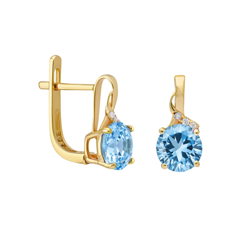 Тези златни обеци са олицетворение на елегантността, съчетавайки блясъка на жълтото злато с класическите линии на нежния дизайн. На обеците са инкрустирани висококачествен син цирконий с прецизна шлифовка, чрез която се отразява светлината във всички посоки. Благодарение на майсторската изработка, камъкът е фиксиран по начин, който подчертава неговия обем, без да натежава на общата композиция. Нежните извивки на обеците дискретно наподобява символа на безкрайността.