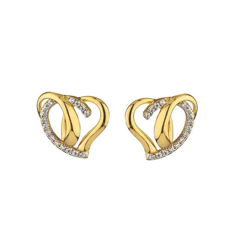 Тези златни обеци са израз на нежност и емоция, съчетавайки топлия блясък на жълтото злато с изящни, плавни линии. Дизайнът е изграден от преплетени сърцевидни елементи, които символизират любовта. Част от формите са деликатно инкрустирани висококачествен син цирконий с прецизна шлифовка, чрез която се отразява светлината във всички посо. Благодарение на прецизната изработка, всеки детайл е хармонично балансиран, а композицията създава усещане за движение и непрекъснатост. Обеците са елегантен акцент, който носи усещане за топлина, романтика и вечна стойност.