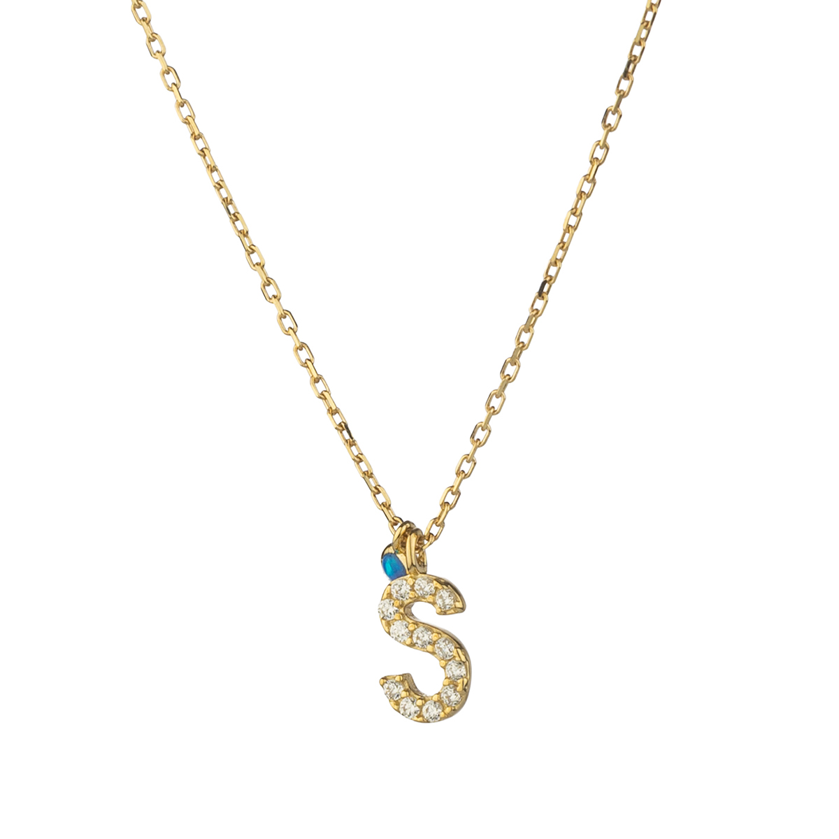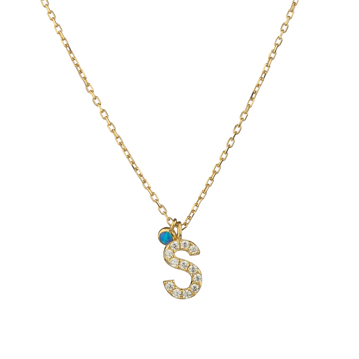 Това изящно златно колие с буква „S“ впечатлява с баланса си между персонален символ и фин блясък. Обсипано с деликатни циркониеви камъчета, то улавя светлината по нежен, елегантен начин и добавя стилен акцент към всяка визия.